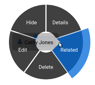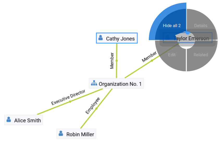 To explore an example, we can once more refer to the built-in topic type “Person”. To look at the data model of a person, click onto an instance, e.g. a person you created and select “Related”.