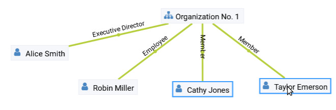 Create an assocation between them, edit it and select the association type “Employment relation”. Look at the in-map details: Both persons have the default role type. You cannot tell who is in which role.