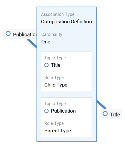 Oftentimes when you create associations it is clear which of the two connected players is in which role: In the example above, the publication is the parent type and the title is the child type. There are cases though where you want to define your own role types because without them the relationship (or its “direction”) is not clear: This is likely needed when two players of the same type are associated. An example could be a hierarchical relationship between two persons like an employment relation. You would model the employment relation as an association type. But when you create instances of this association you would not see which player is in which role: Which person is the manager and which person is the employee? Here is how to deal with this use case: